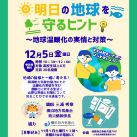 明日の地球を守るヒント💡 ~地球温暖化の実情と対策~ 12/5(金)10:30~12:00 横浜地方気象台より講師を招き、 地域の皆さんと一緒に現在の…