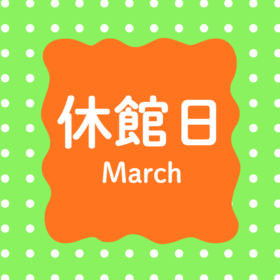 3月休館日のお知らせです。 ご不便をおかけいたしますが、よろしくお願いいたします。