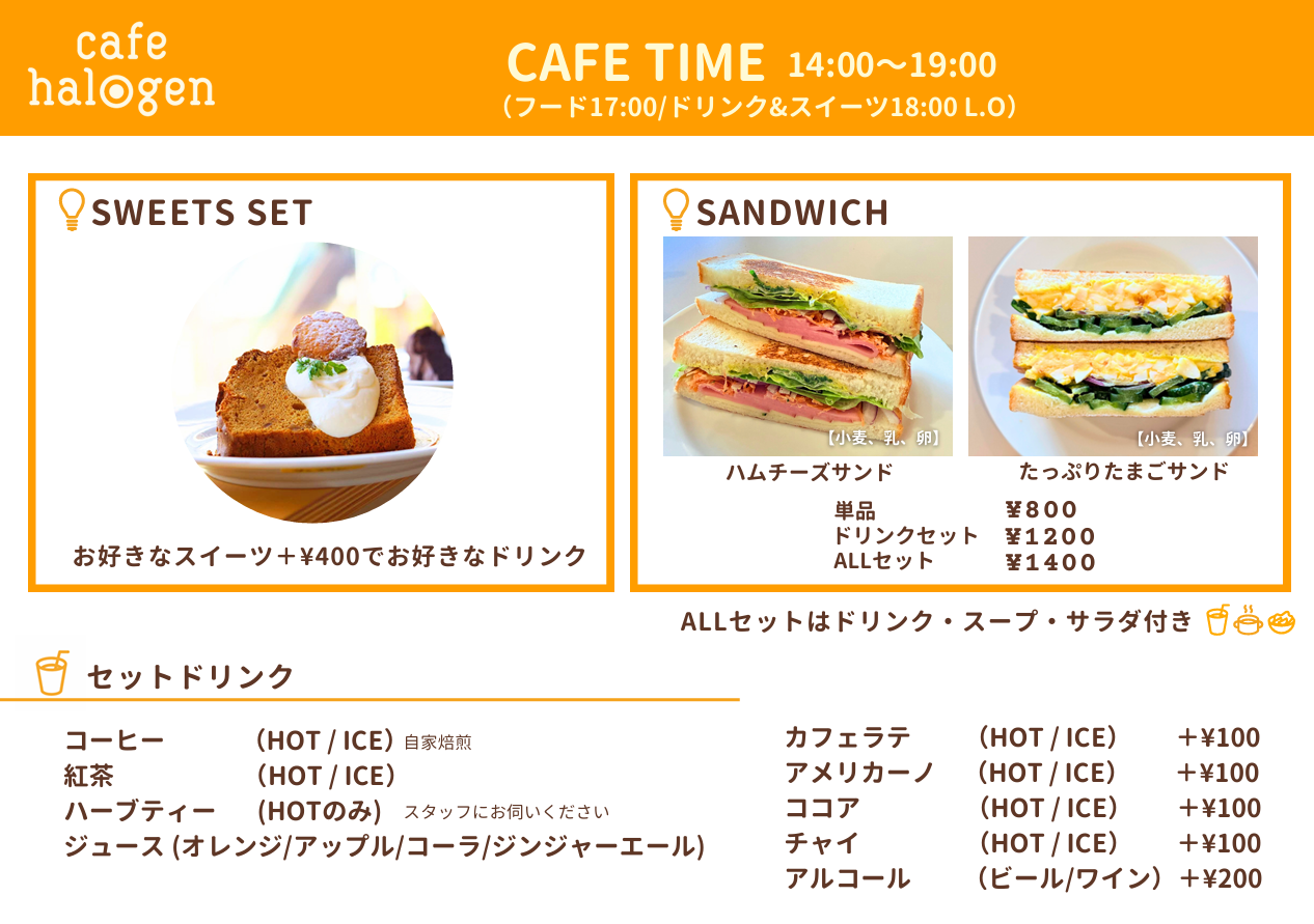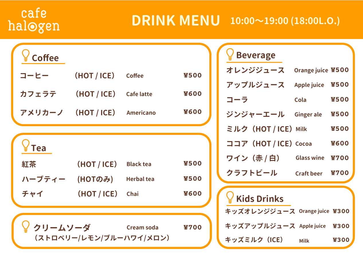 ※アルコールの提供は20歳以上、カフェエリアでの飲食に限らせて頂きます。