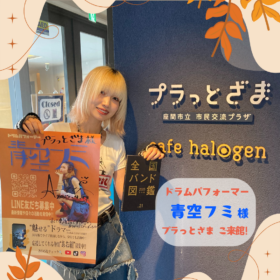 座間市出身の魅せるドラマー! 国内外でライブ出演の他、 SNSでも活躍中の青空フミ様 先日プラっとざまにご来館されました✨ ポスターにメッセージとサイ…