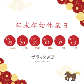 【休館日のお知らせ】 いつもプラっとざまをご利用いただきありがとうございます。 12月の休館日は、12月2日(火) です。 12月3日(水)以降は通常…