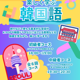 大好評!『楽しく学ぶ韓国語講座』新クール開催決定! 基本的な会話から、K-popや韓国ドラマで使われる表現など為になる韓国語が気軽に学べます。 夜間に…