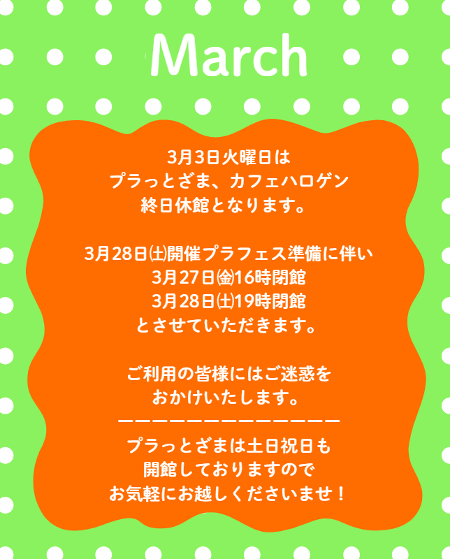 3月休館日のお知らせです。