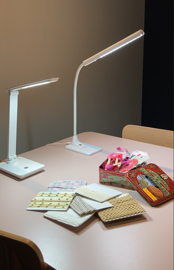 無料貸し出しのスタンドライトを活用し、手芸や資料整理、読書会など